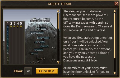 The foundational gameplay loops of Daemonheim Dungeoneering are already solid. Repeatedly delving into the unknown to explore an ancient area of the world of Gielinor, all while needing to make do with the resources you're presented with, rather than relying on what you've otherwise amassed in the overworld. This skill is fundamentally about challenging you and your skills, without the backup of a mountain of wealth. While this promise still holds true today, the reality is that the skill itself feels a bit tired and outdated. As simple as this statement sounds, it is hugely important: Dungeoneering is a skill. It's a core part of the backbone of RuneScape as a whole, and should be revitalised with the proper care and attention deserving of that. We want to modernise those Dungeoneering fundamentals we mentioned above, so that it is more enjoyable to play and more rewarding to engage with over longer periods of time. We want to prepare it for a future where it can be occasionally tweaked without feeling that those changes are not far reaching enough because the foundations have not been adjusted.